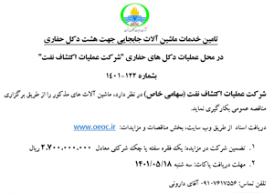 تامین خدمات ماشین آلات جابجایی جهت هشت دکل حفاری