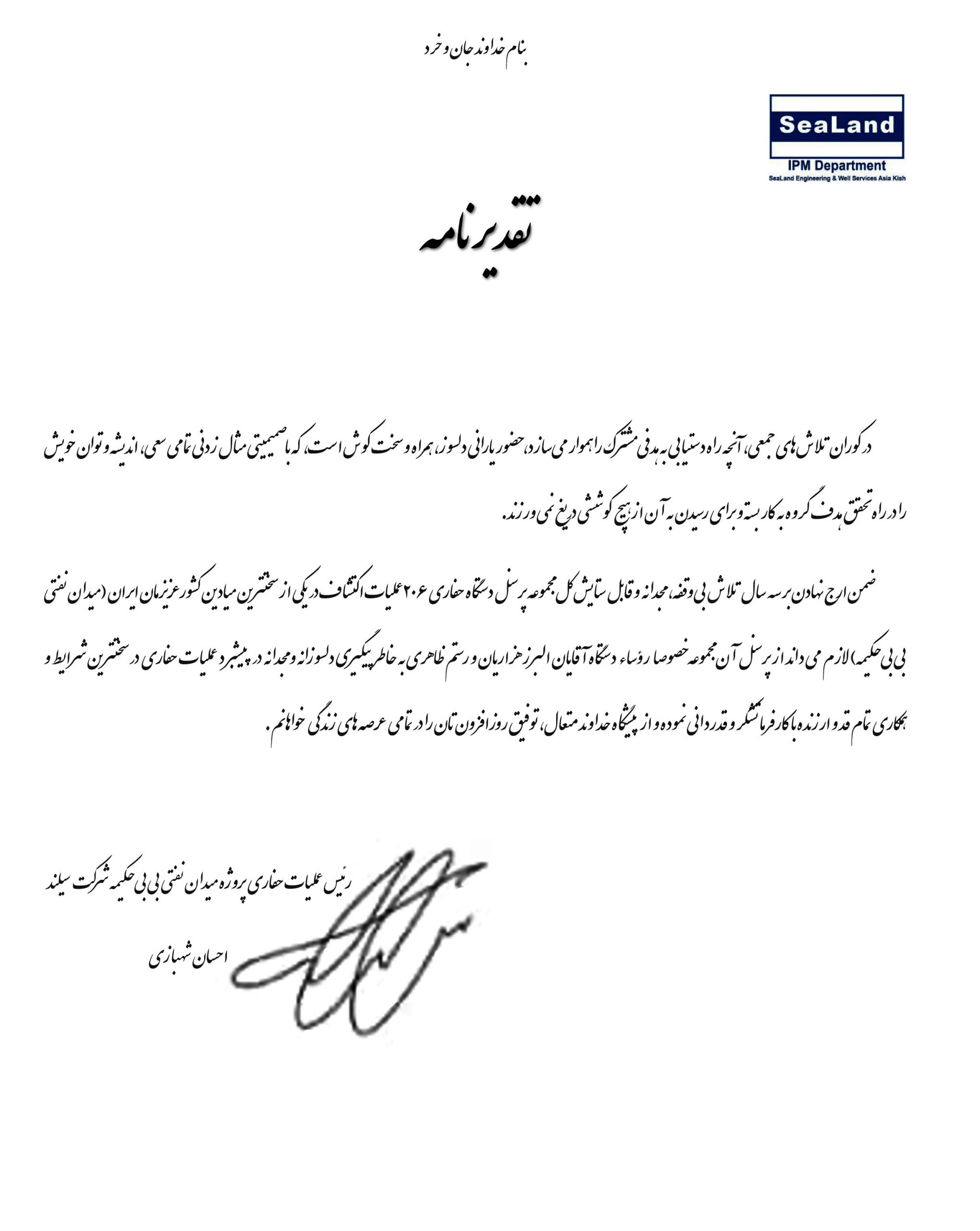 پیام قدردانی ناظر محترم مناطق از دستگاه حفاری 205 - 1404.05.08
